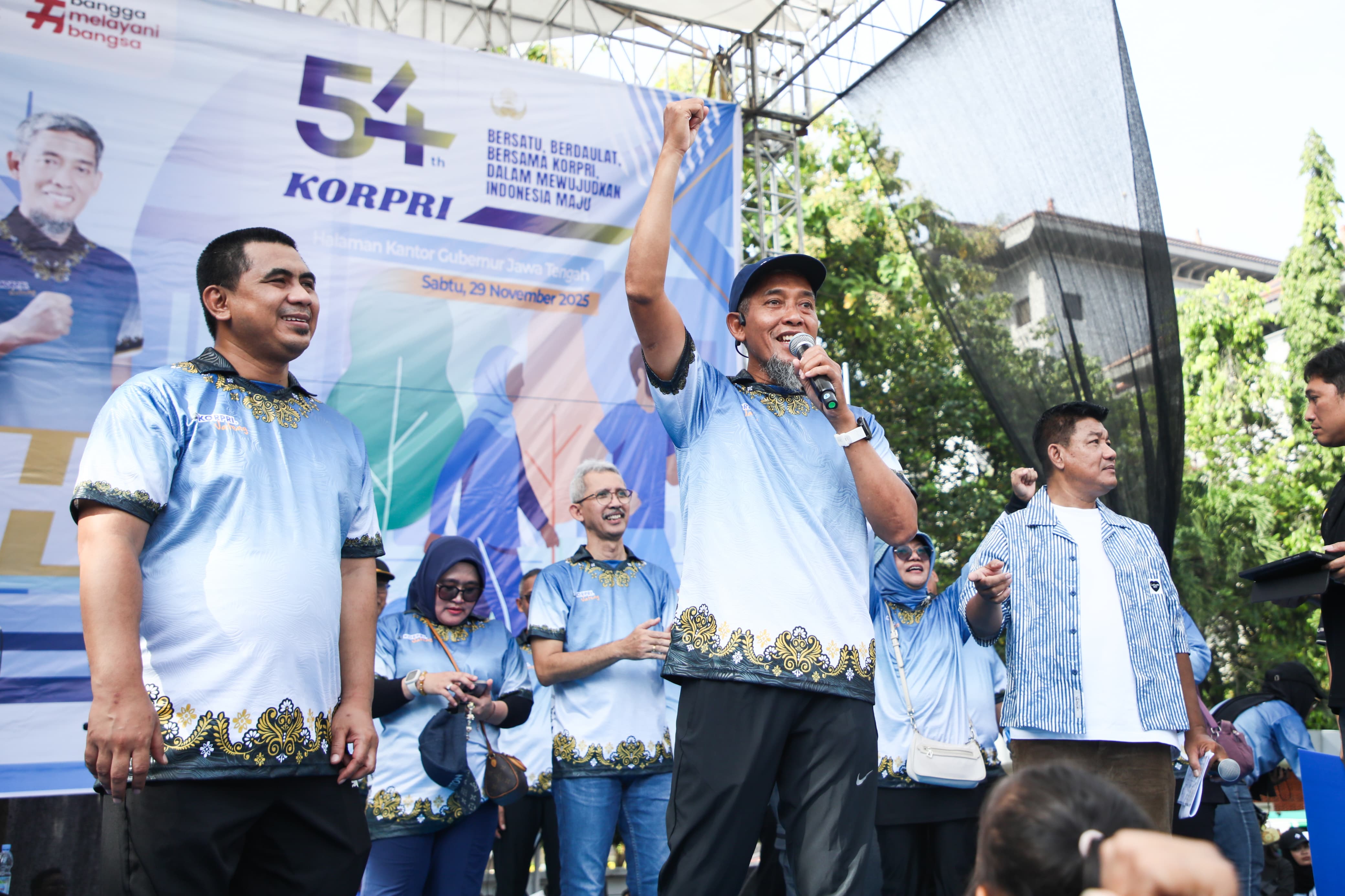 SEMARANG – Ribuan peserta dari berbagai daerah mengikuti kegiatan jalan sehat dalam rangka Hari Ulang Tahun (HUT) ke-54 Korps Pegawai Negeri (Korpri) tingkat provinsi Jawa Tengah di halaman Kantor Gubernur Jawa Tengah, pada Sabtu, 29 November 2025.