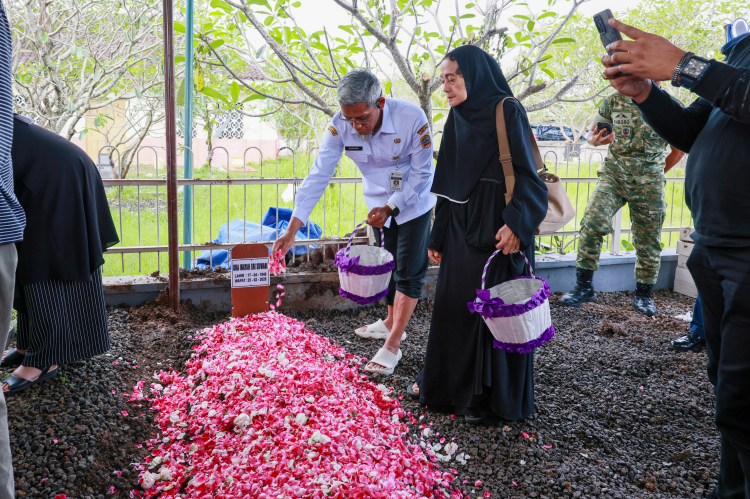 SUKOHARJO - Sekretaris Daerah Provinsi Jawa Tengah, Sumarno, mengikuti prosesi pemakaman Almarhumah Inayah Sri Suwani, Mertua Gubernur Jawa Tengah Komjen Pol (P) Drs. Ahmad Luthfi, S.H., S.St.M.K., di Tempat Pemakaman Umum (TPU) Pracimaloyo, Kabupaten Sukoharjo pada Rabu, 25 Februari 2026.